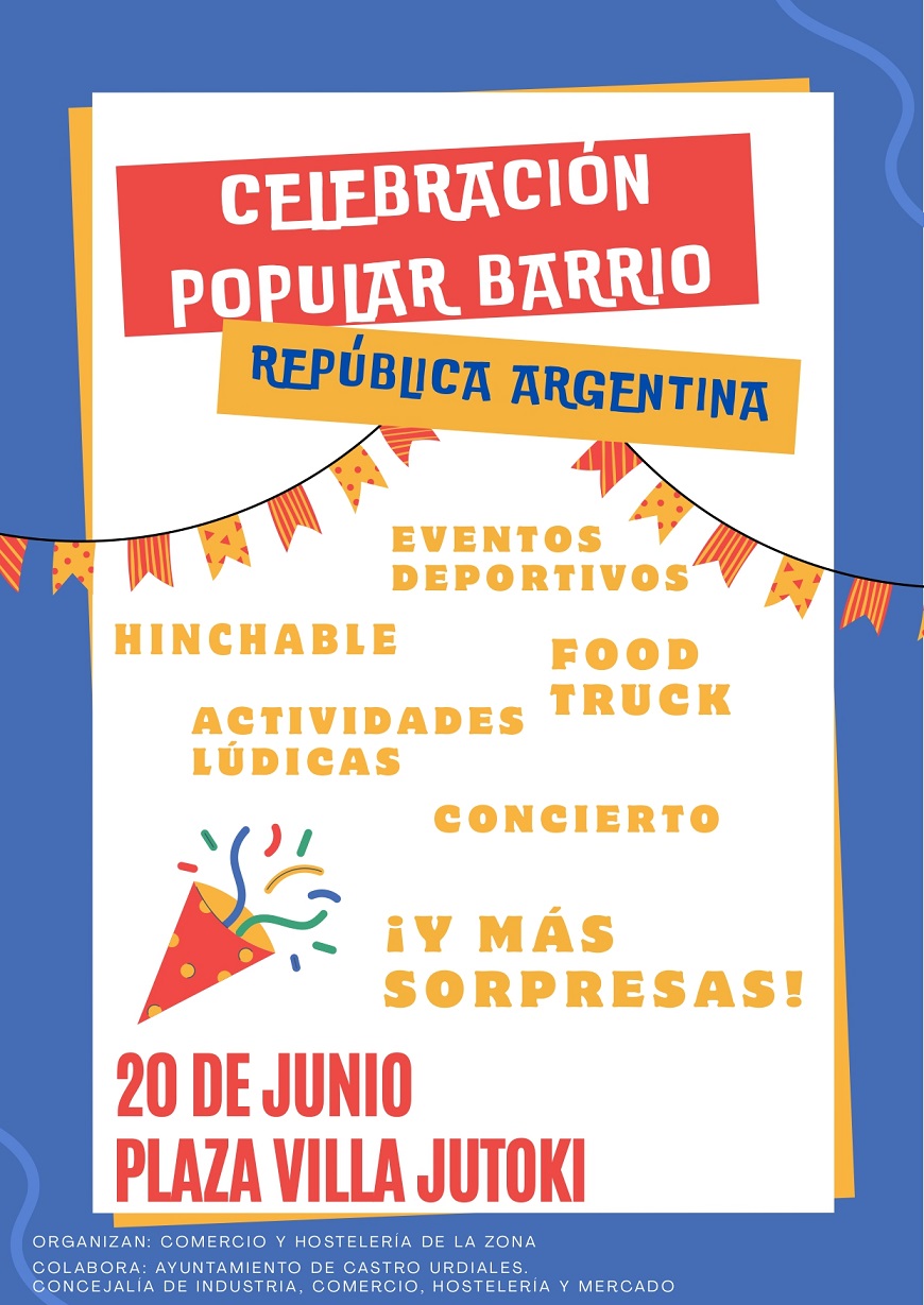 El Ayuntamiento de Castro-Urdiales a través de la Concejalía de Industria, Comercio, Hostelería y Mercado, en colaboración con los comercios y hosteleros del barrio de República Argentina, organiza este viernes 20 de junio una gran celebración popular en la Plaza de la República Argentina.