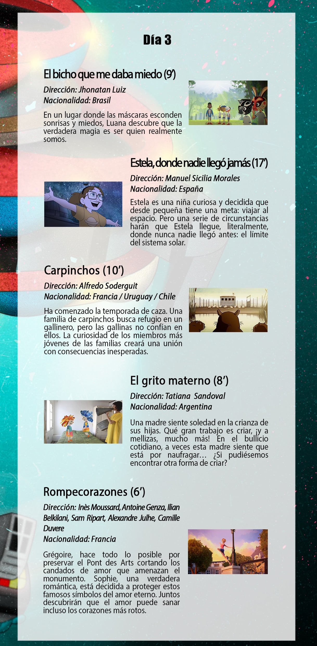 Los cortos están destinados para un público de entre 3 y 12 años, aunque los adultos también podrán disfrutar como niños!!.