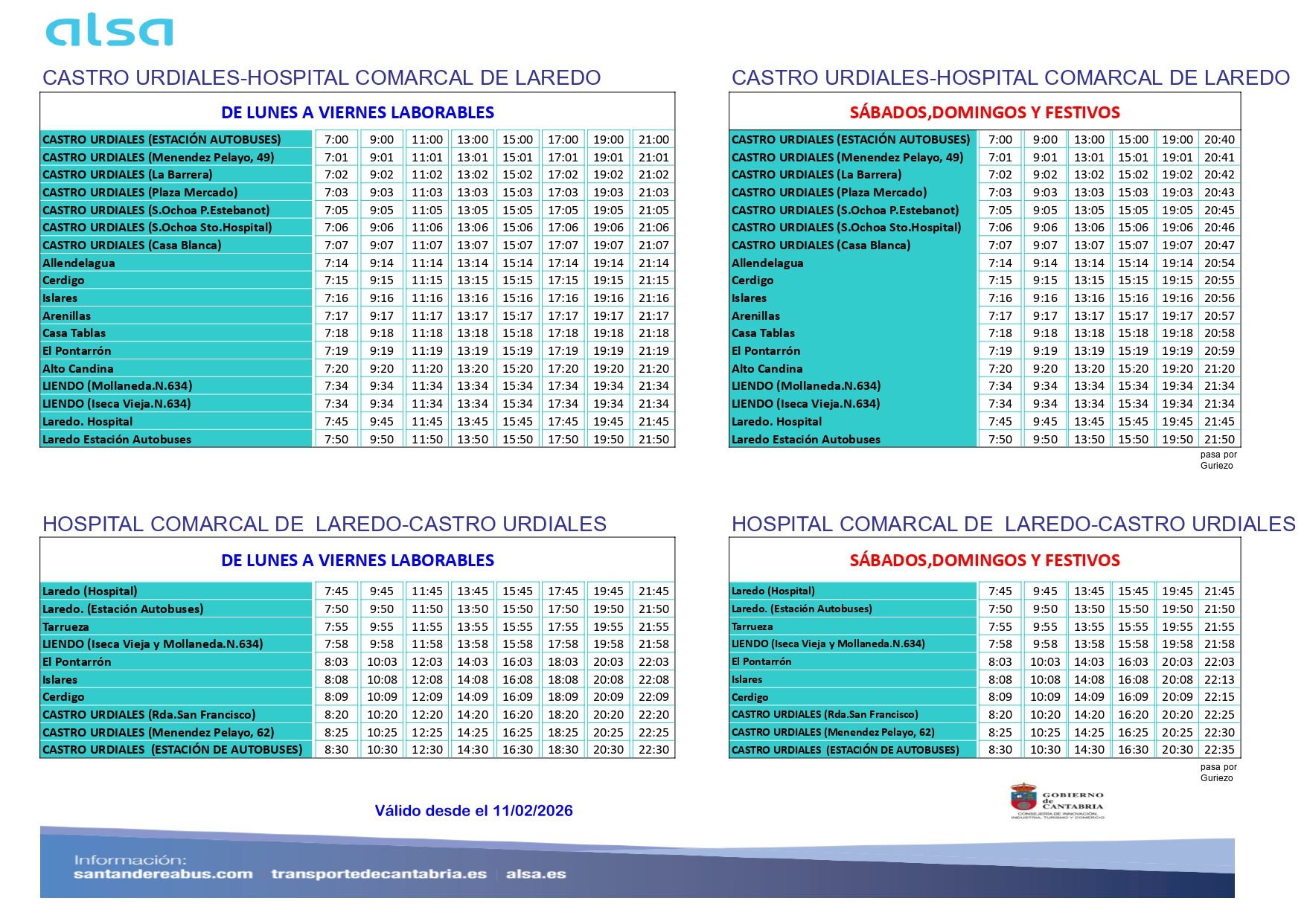Bus Castro-Liendo-Hospital-Laredo - Horarios a partir 11/02/2026